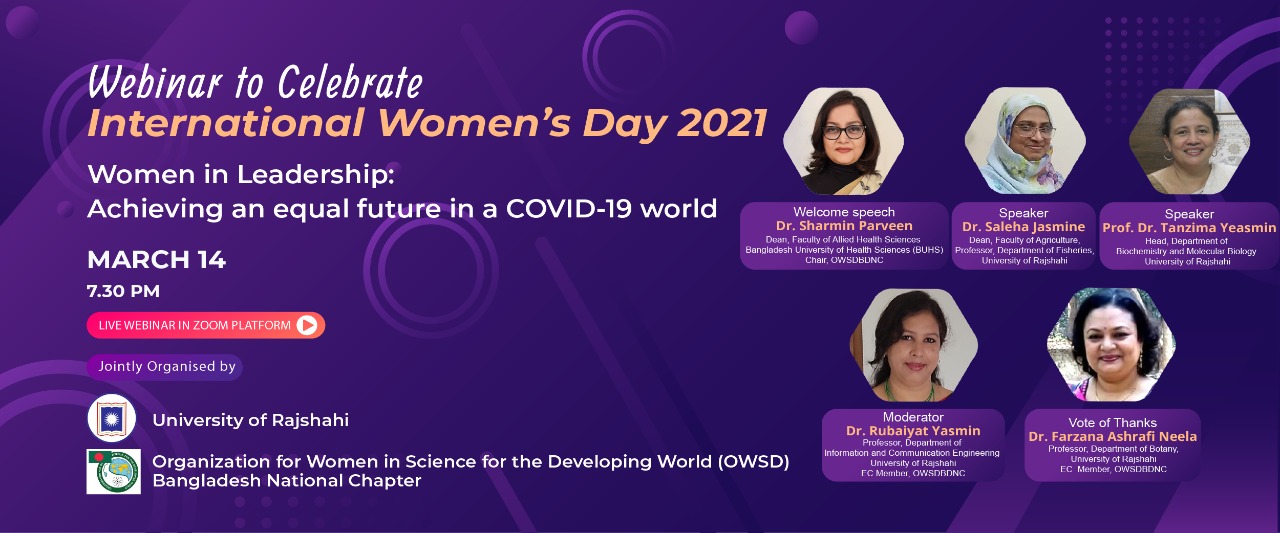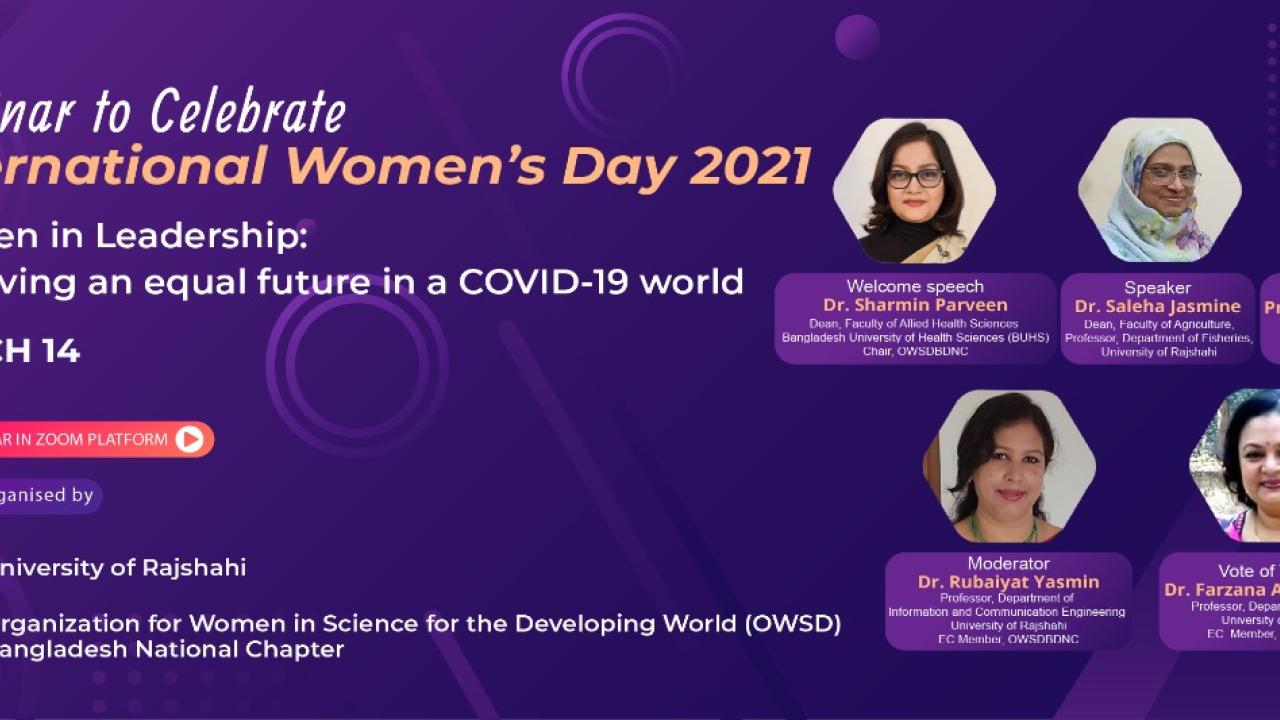 Webinar in Celebration of IWD 2021 jointly by OWSD-BDNC and Rajshahi University on the key theme 'Women in Leadership: Achieving an equal future in the COVID-19 world'