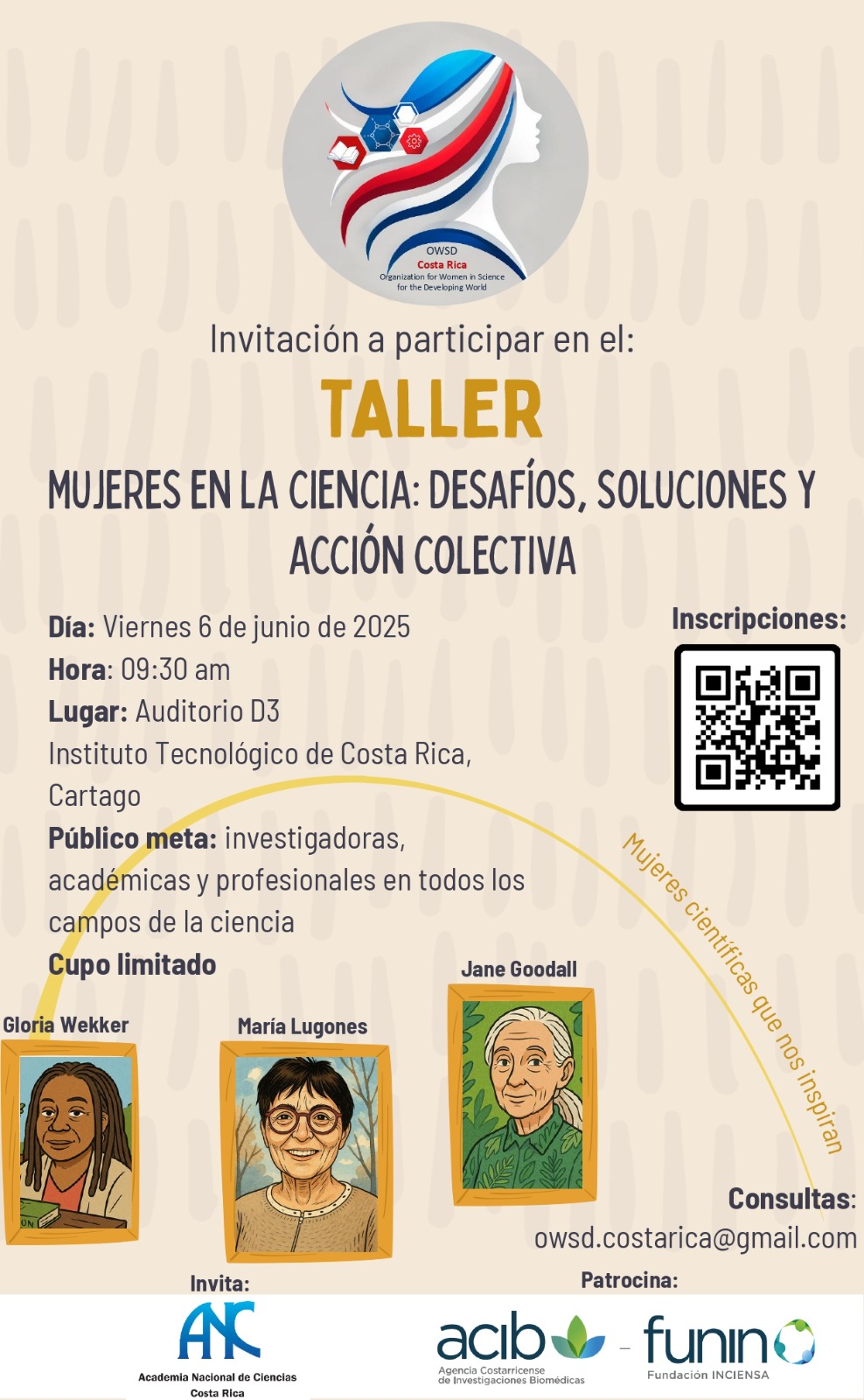 Invitamos a las mujeres investigadoras, académicas y profesionales en todos los campos de las ciencias al taller: mujeres en las ciencias: desafíos, soluciones y acción colectiva.