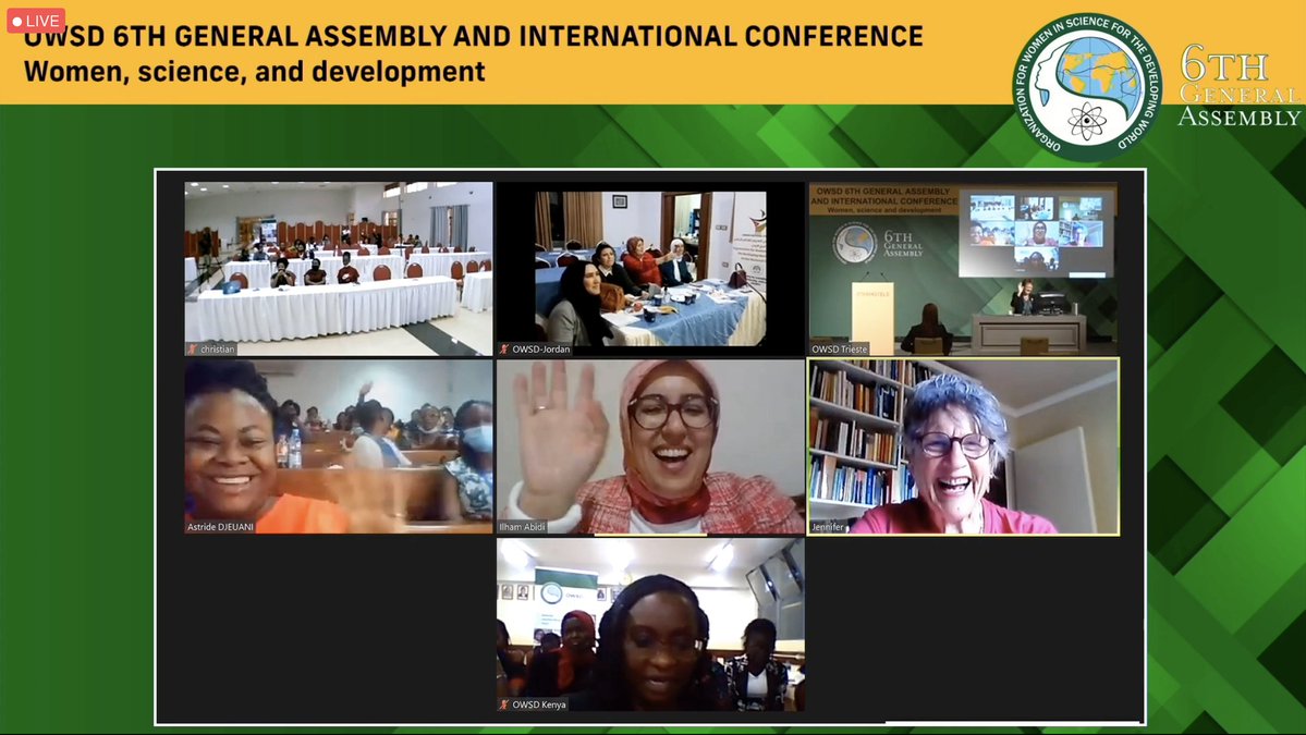 The tenth and final day of the conference on November 19 was devoted to OWSD’s network of 44 National Chapters. During the first half of the day, OWSD members in the various member countries met offline to celebrate and network, discuss research and funding opportunities, mentor young women who were interested in science, and more. This included an in-person meeting in Trieste, Italy—the home of the OWSD Secretariat—where more than a dozen local businesses, academic and scientific institutions, and government representatives voiced their support for women, science, and development.