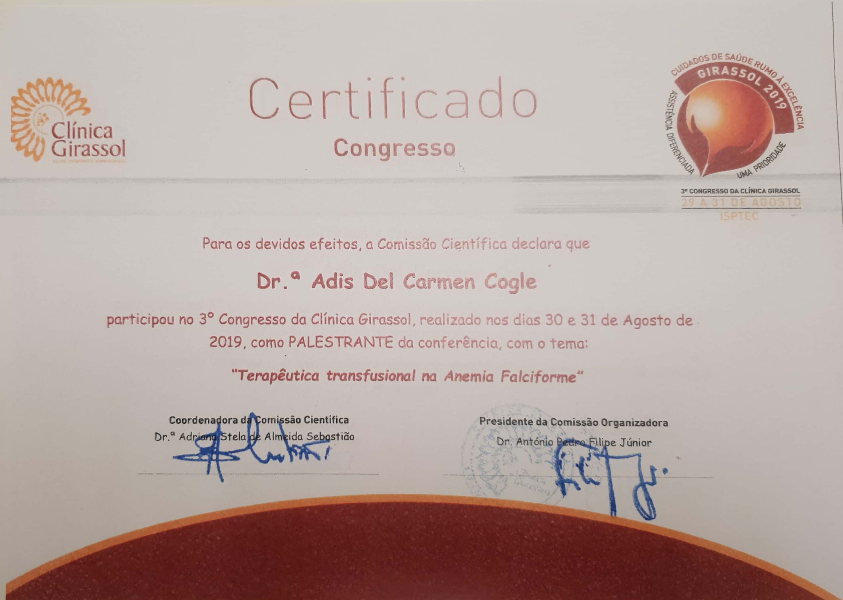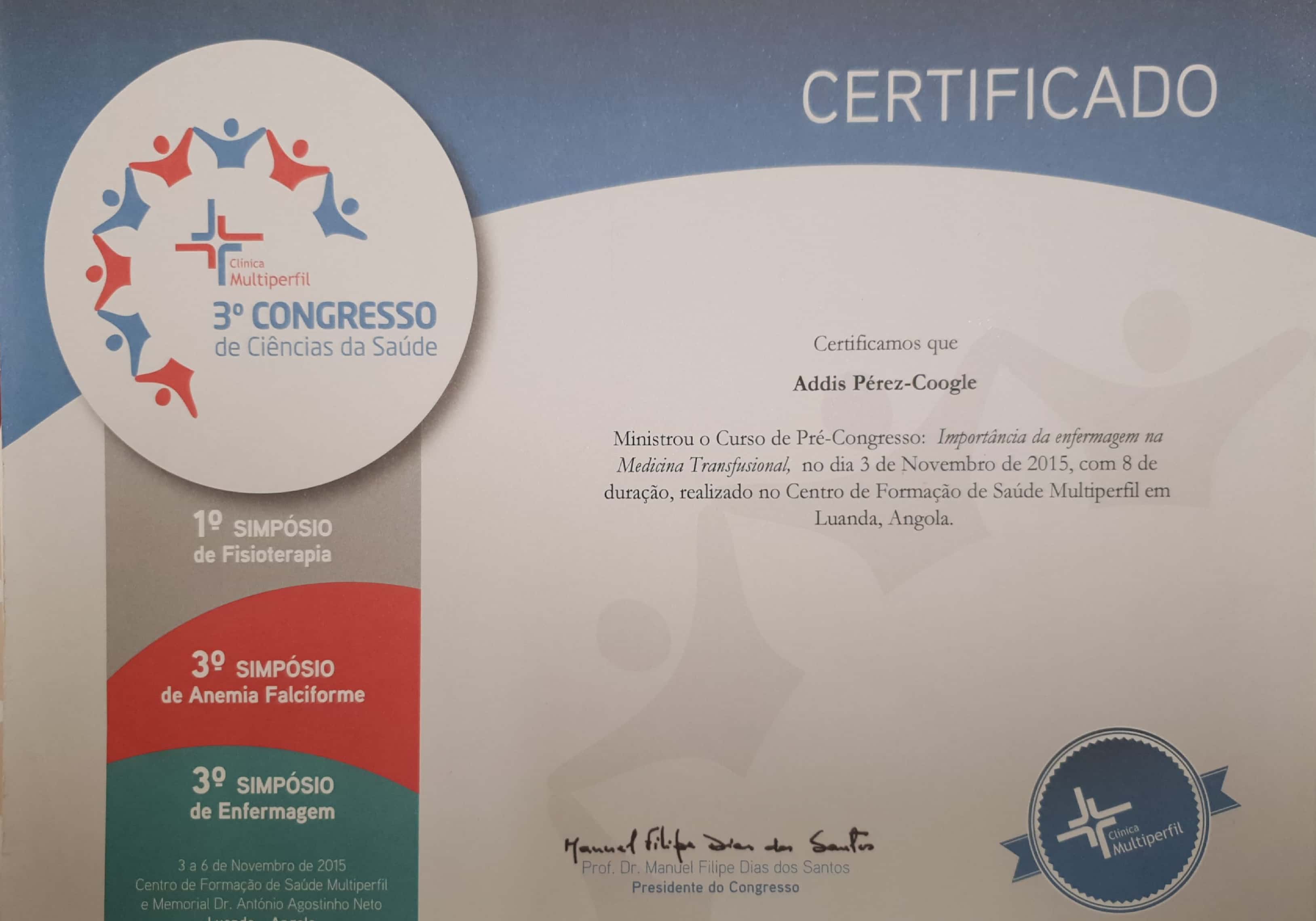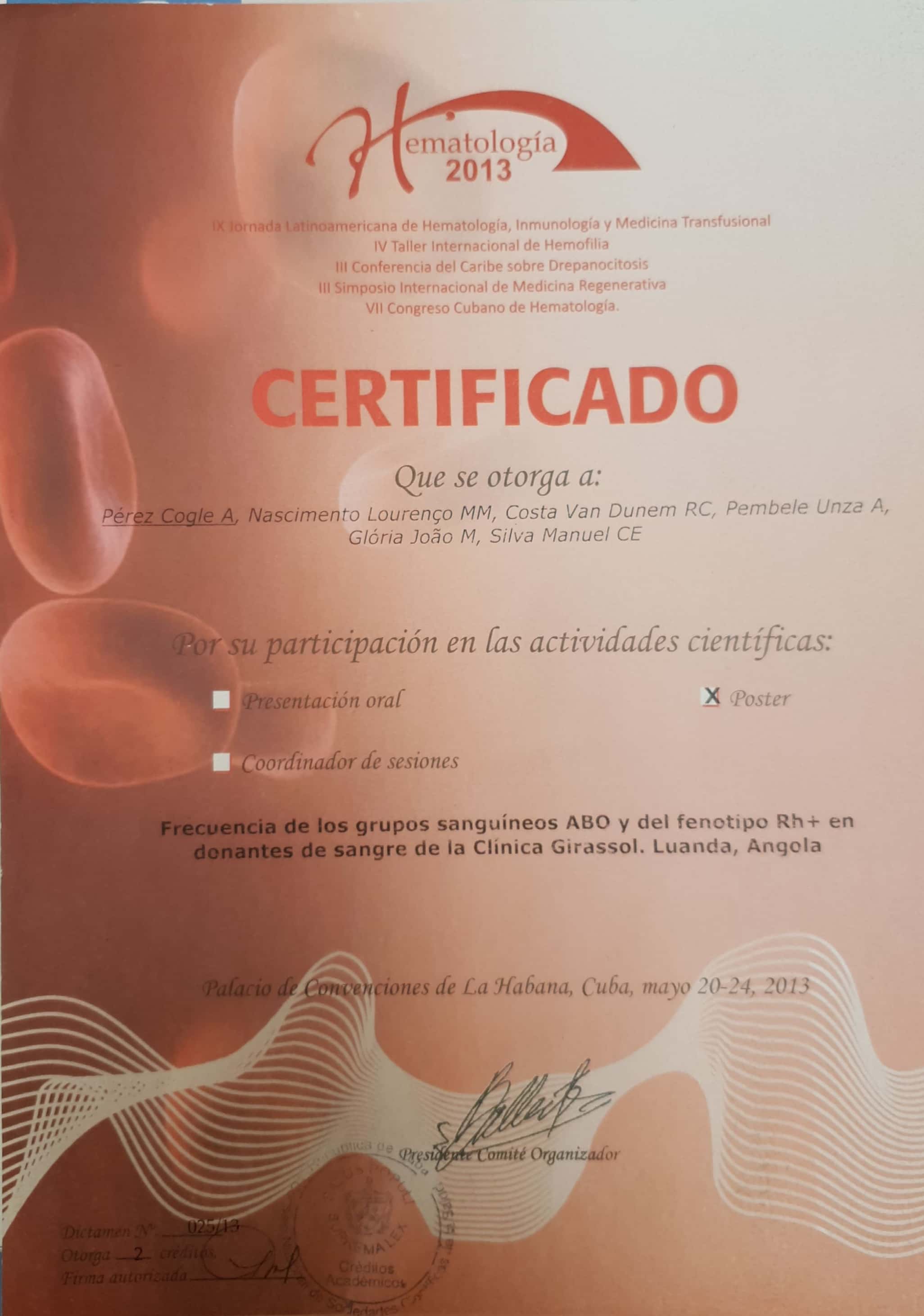 IX Jornada Latinomaericana de Hematologia, Imunologia e Medicina Transfusional , IV taller Internaciobal Hemofilia, IIIConferencia del Caribe dobre Drepanocitosis, III Simposio Internacional Medicina Regenerativa, VII Congresso Cubano Hematologia