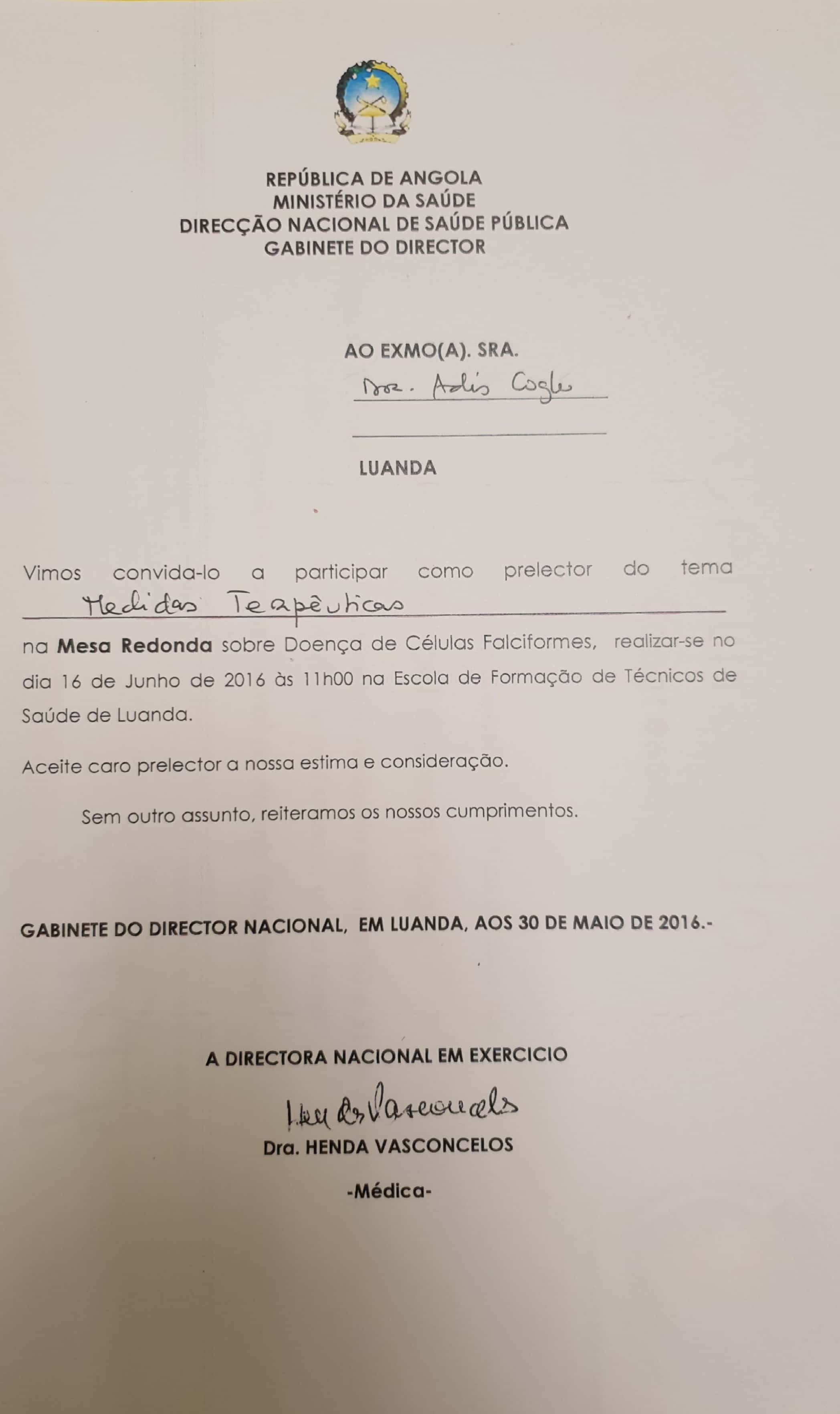 I Workshop Projecto Doença Falciforme Brasil - Angola Apoio à Implementação e Gestão de Medidas para Atenção Integral às Pessoas com Doença Falciforme em Angola