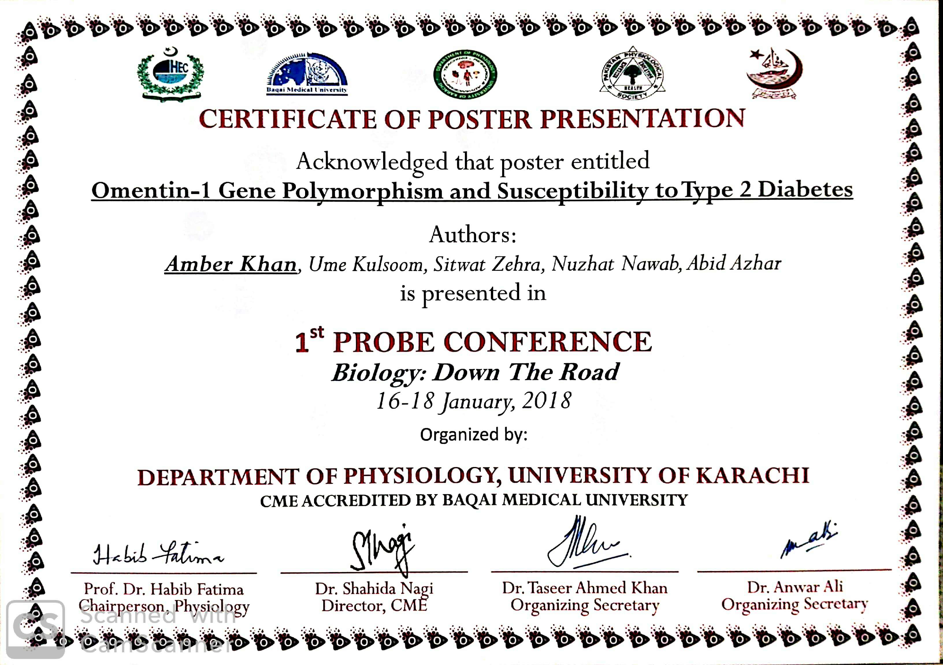 Poster presentation on “Omentin-1 Gene Polymorphism and Susceptibility to Type 2 Diabetes”