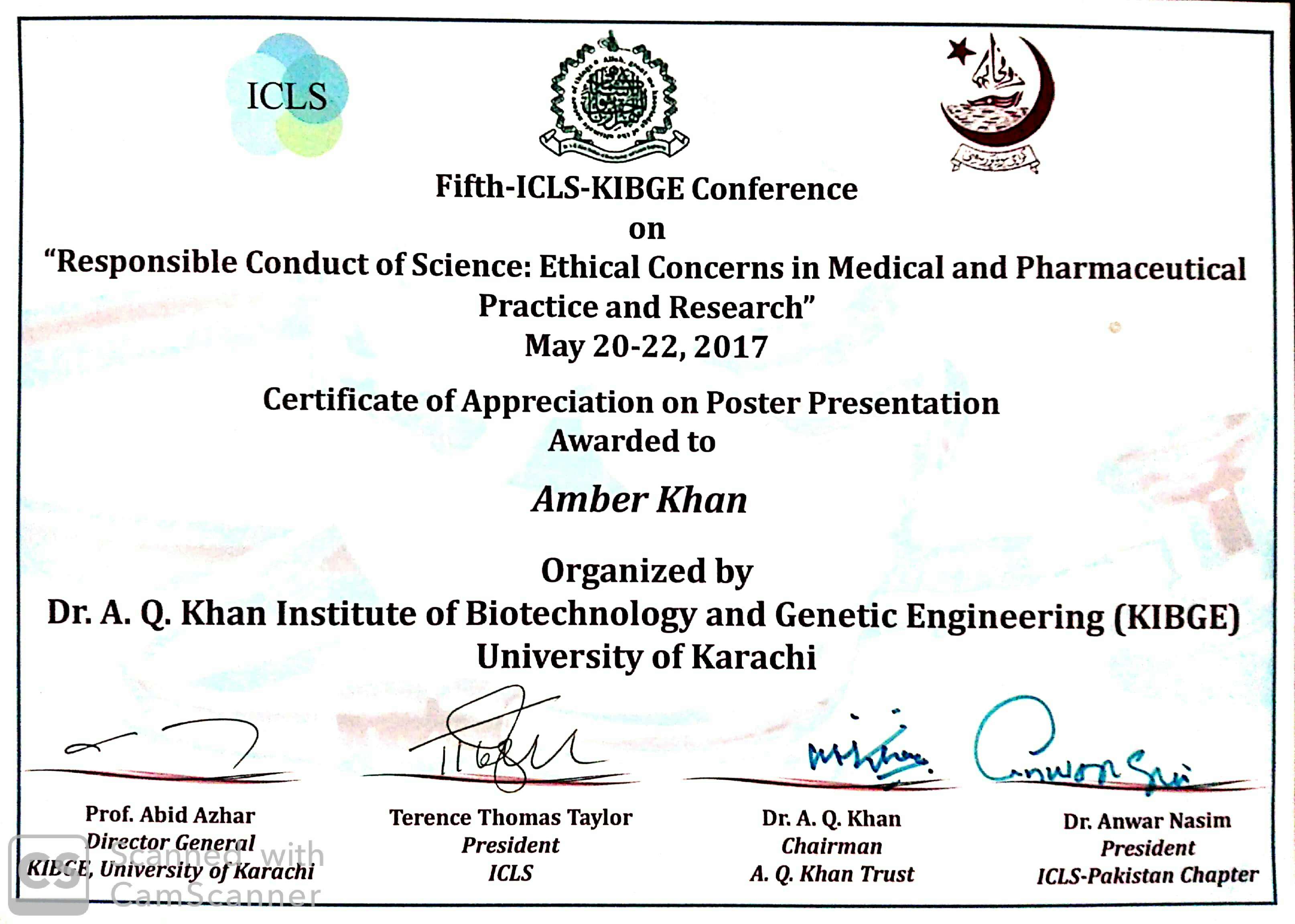 Fifth-ICLS- KIBGE Conference entitles as “Responsible Conduct of Science: Ethical Concerns in Medical and Pharmaceutical Practice and Research”