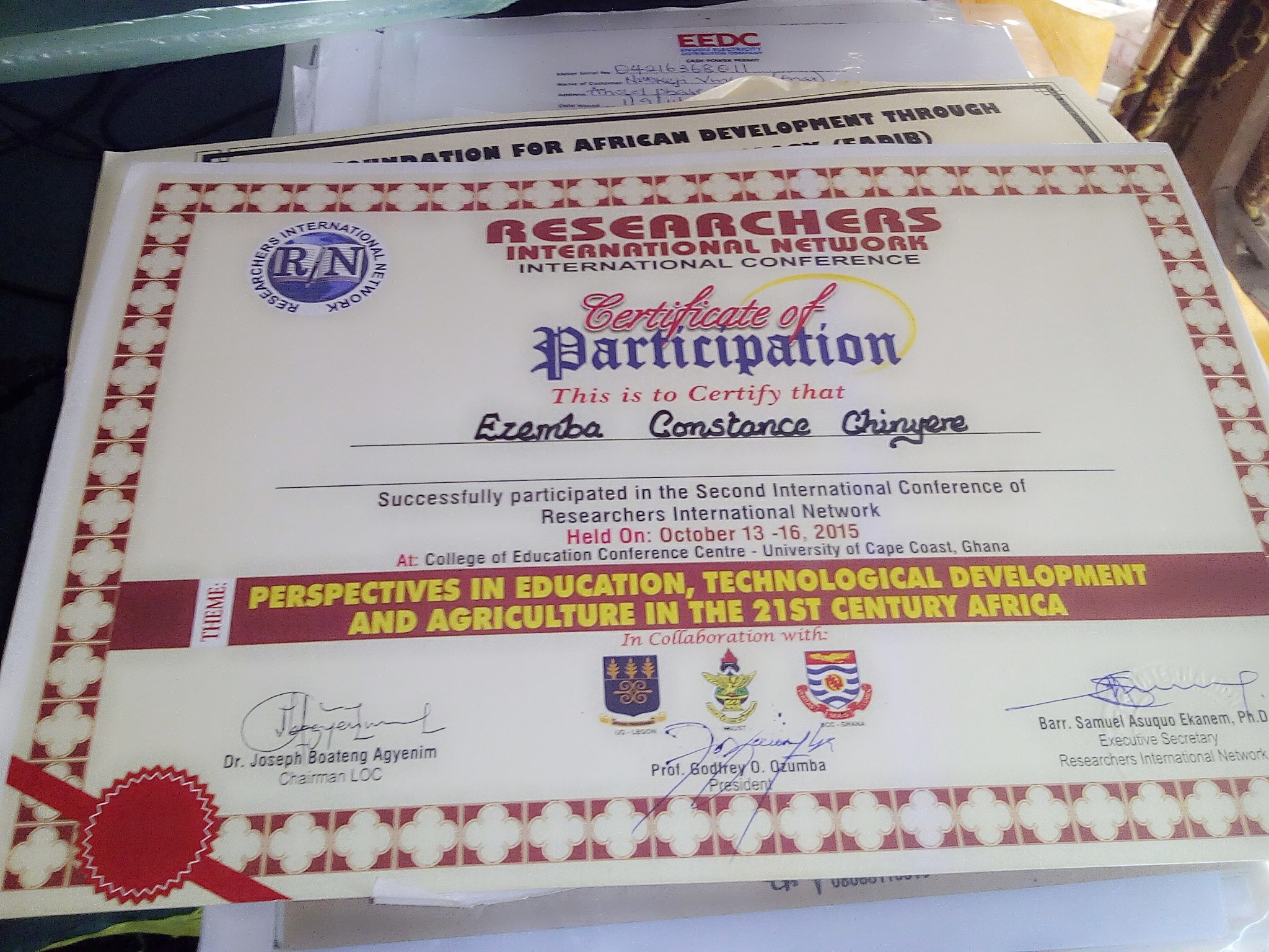 Researchers international network, international conference on Perspectives in education, technological development and agriculture in the 21st century Africa- Ghana