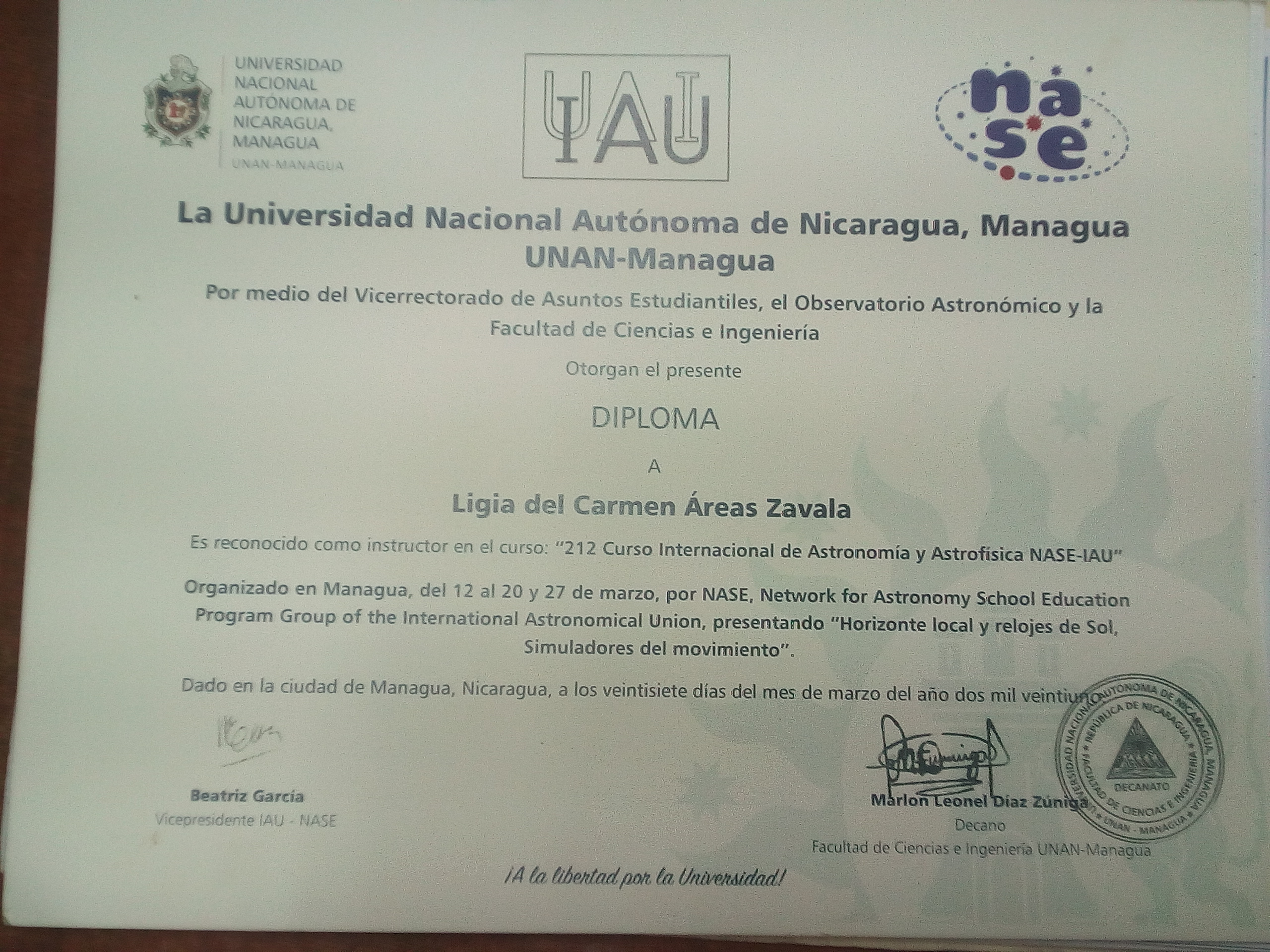 2. Network for Astronomy School Education: Nicaragua 2010-2017.