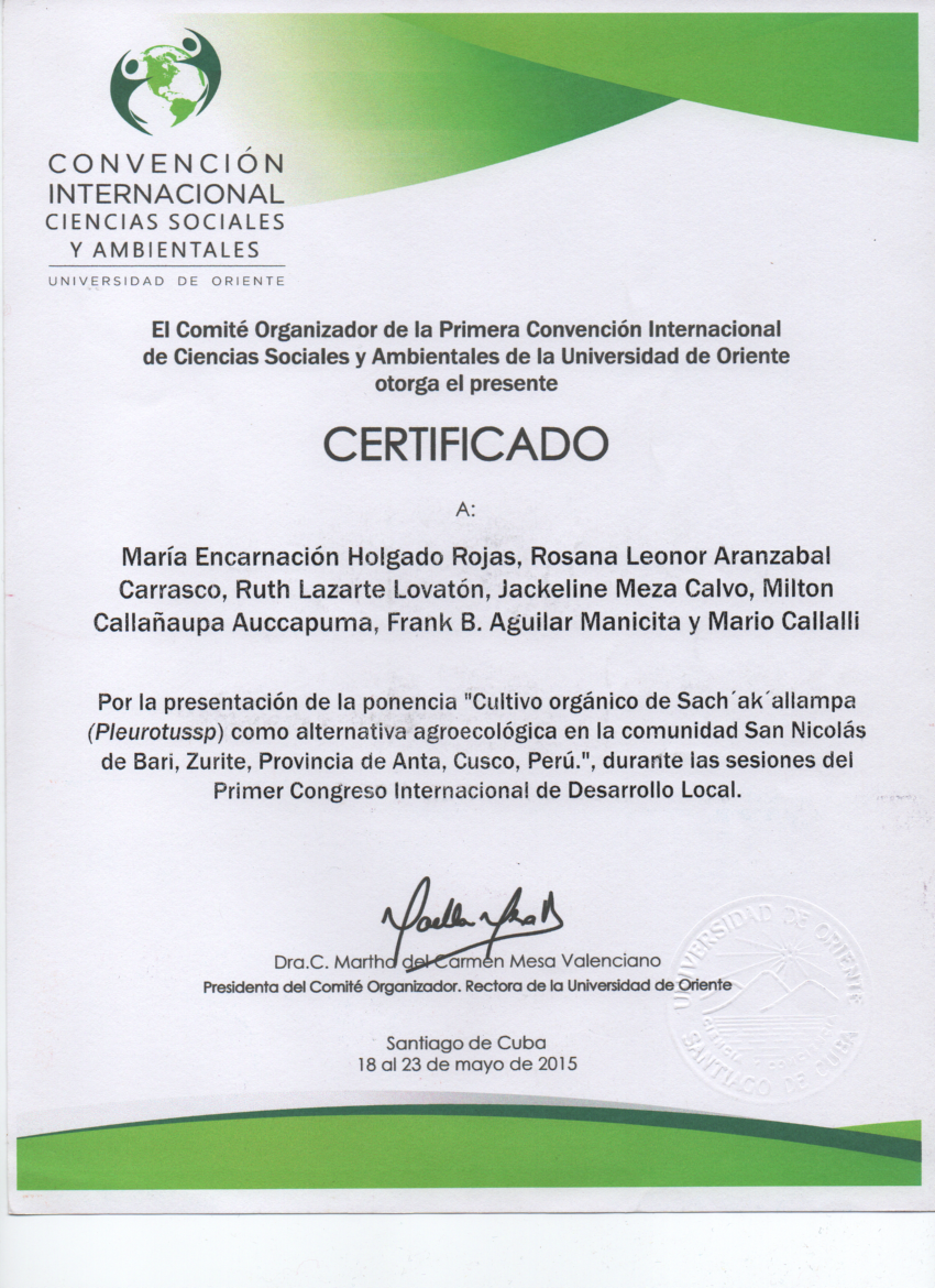 Simposio Cultivo de Hongos en la Región Cusco. IX Congreso Latinoamericano de Micología. Lima-Perú. Agosto 2017