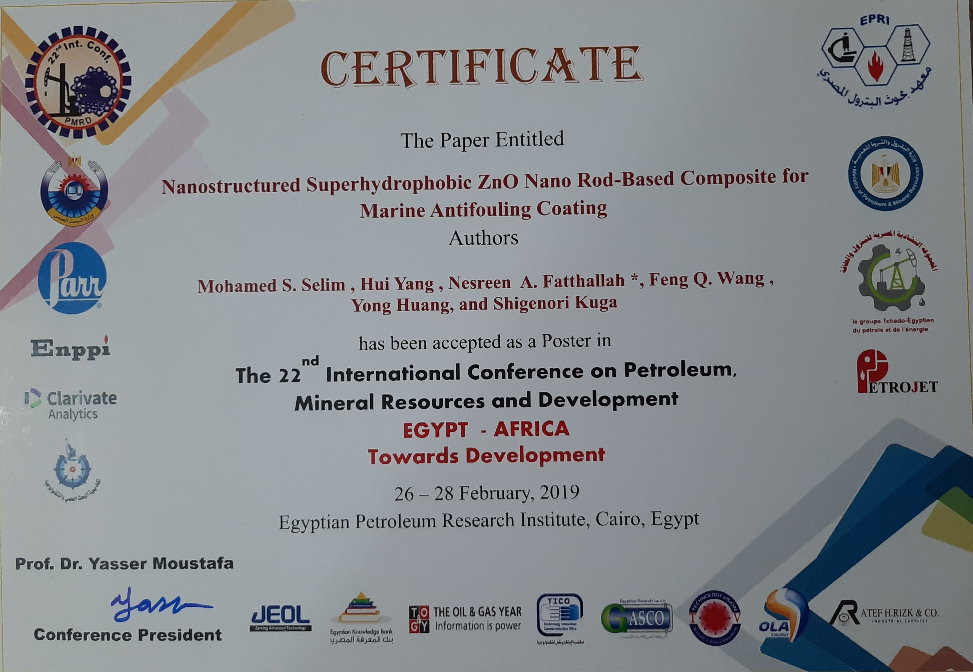 Mohamed S. Selim, Hui Yang, Feng Q. Wang, Nesreen A. Fatthallah, Xue Li, Yue Li, Yong Huang. Journal of coatings technology and research, (2019).