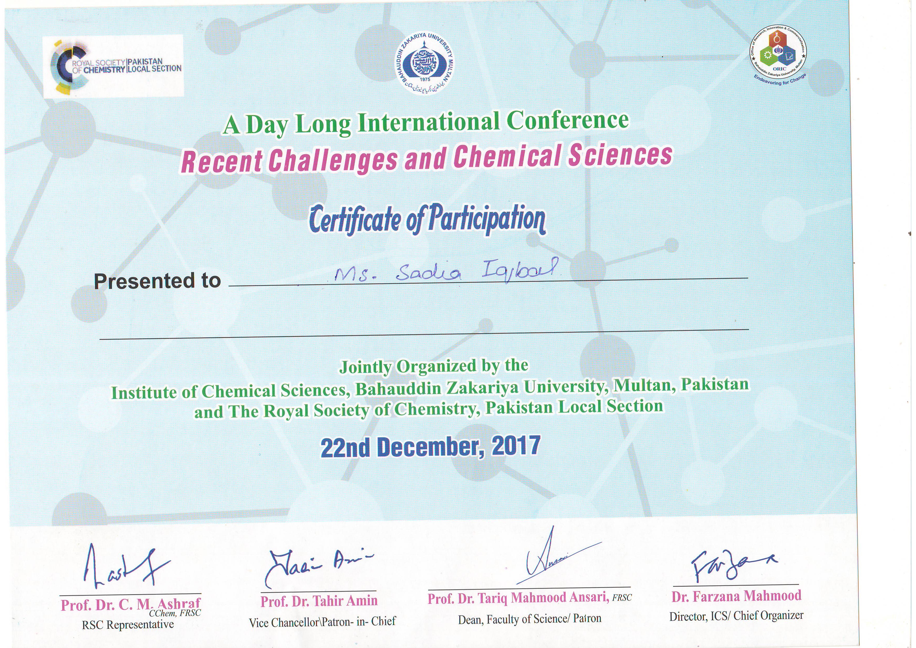 a day long International conference on ”Recent Challenges and Chemical sciences”
