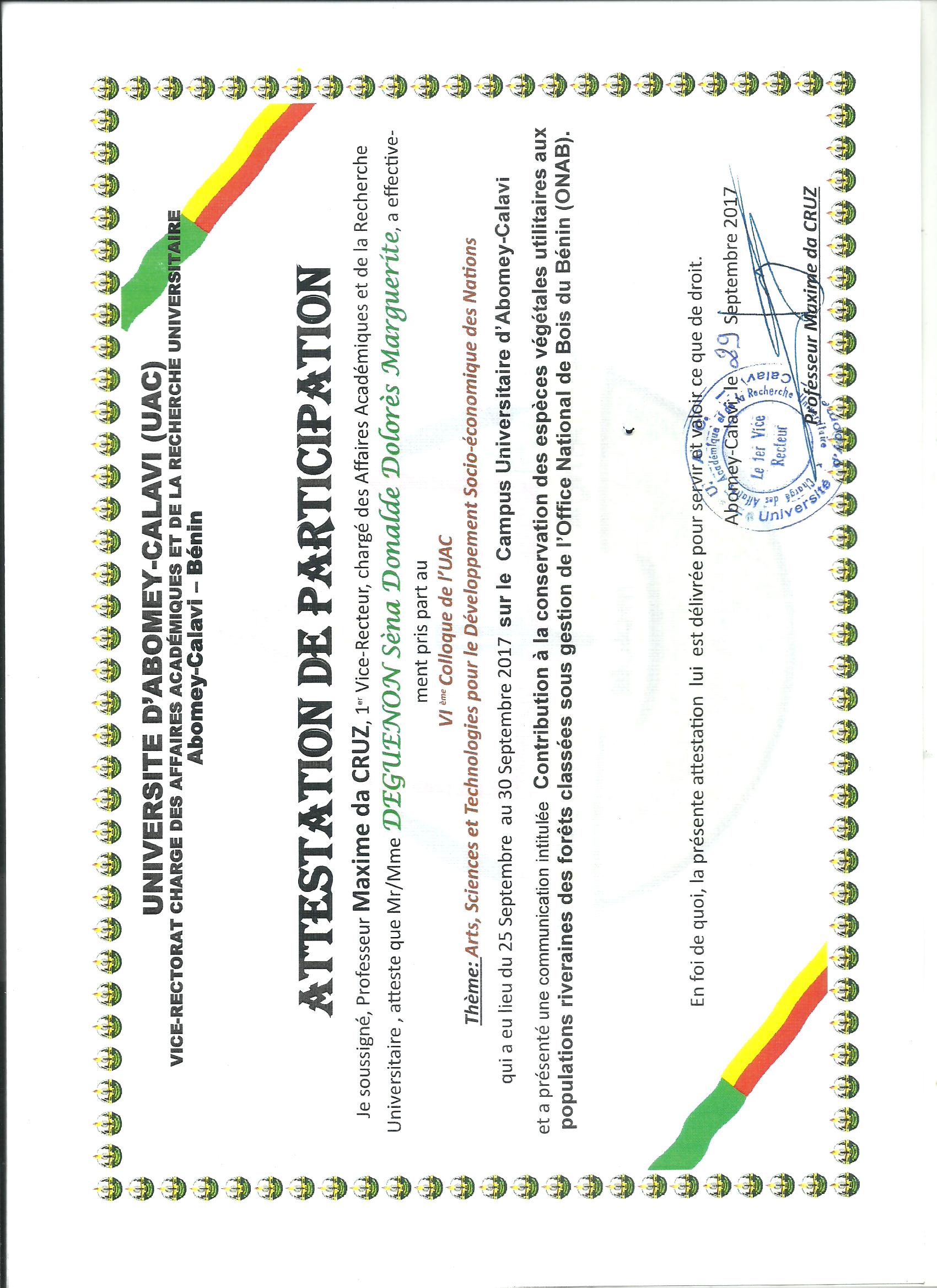 Participation as a communicator at the UAC 2017 colloquium in Workshop III: Natural Sciences Agronomy (https://colloque.uac.bj/colloque2017.php)
