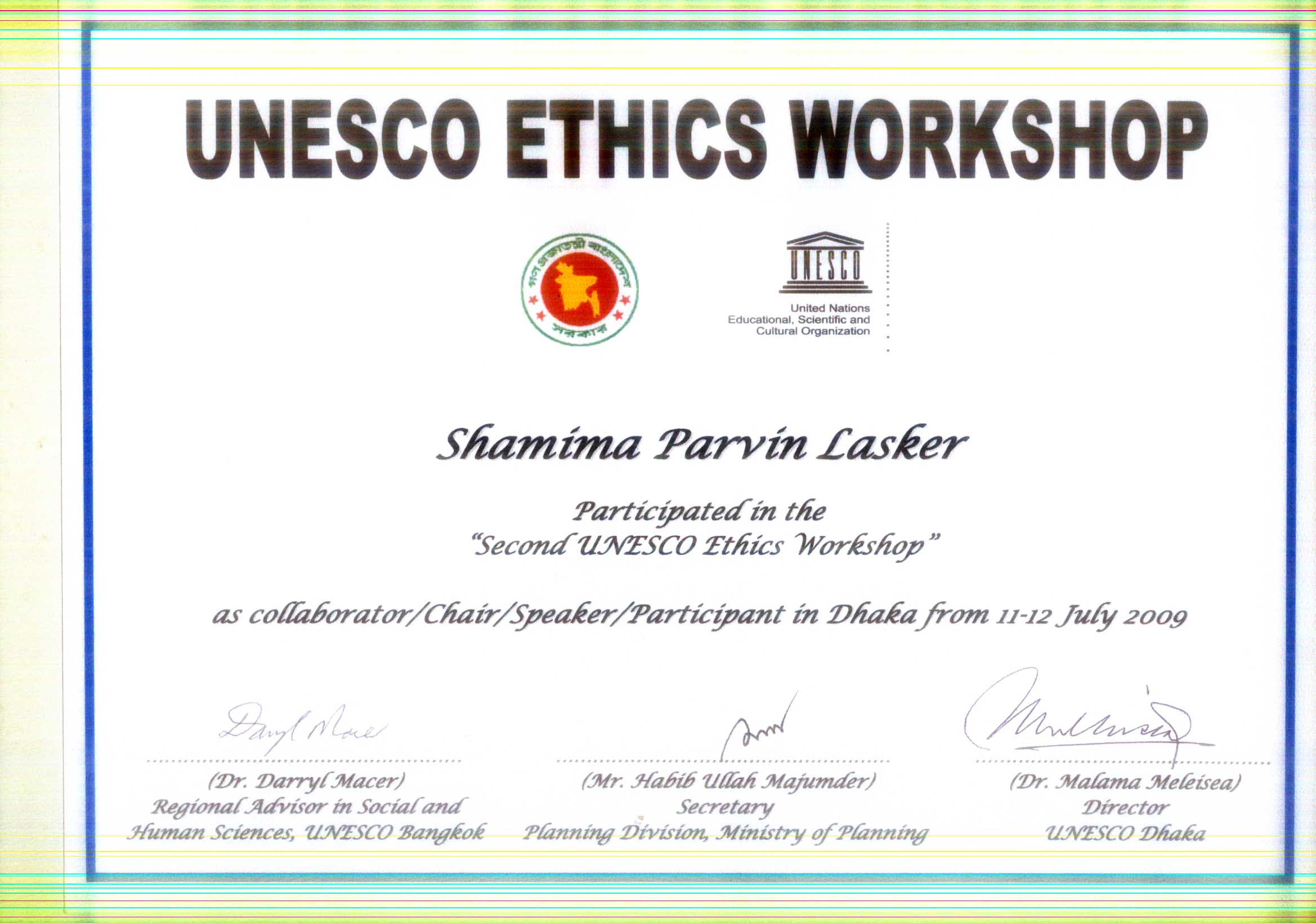 Second UNESCO ethics workshop in Bangladesh,