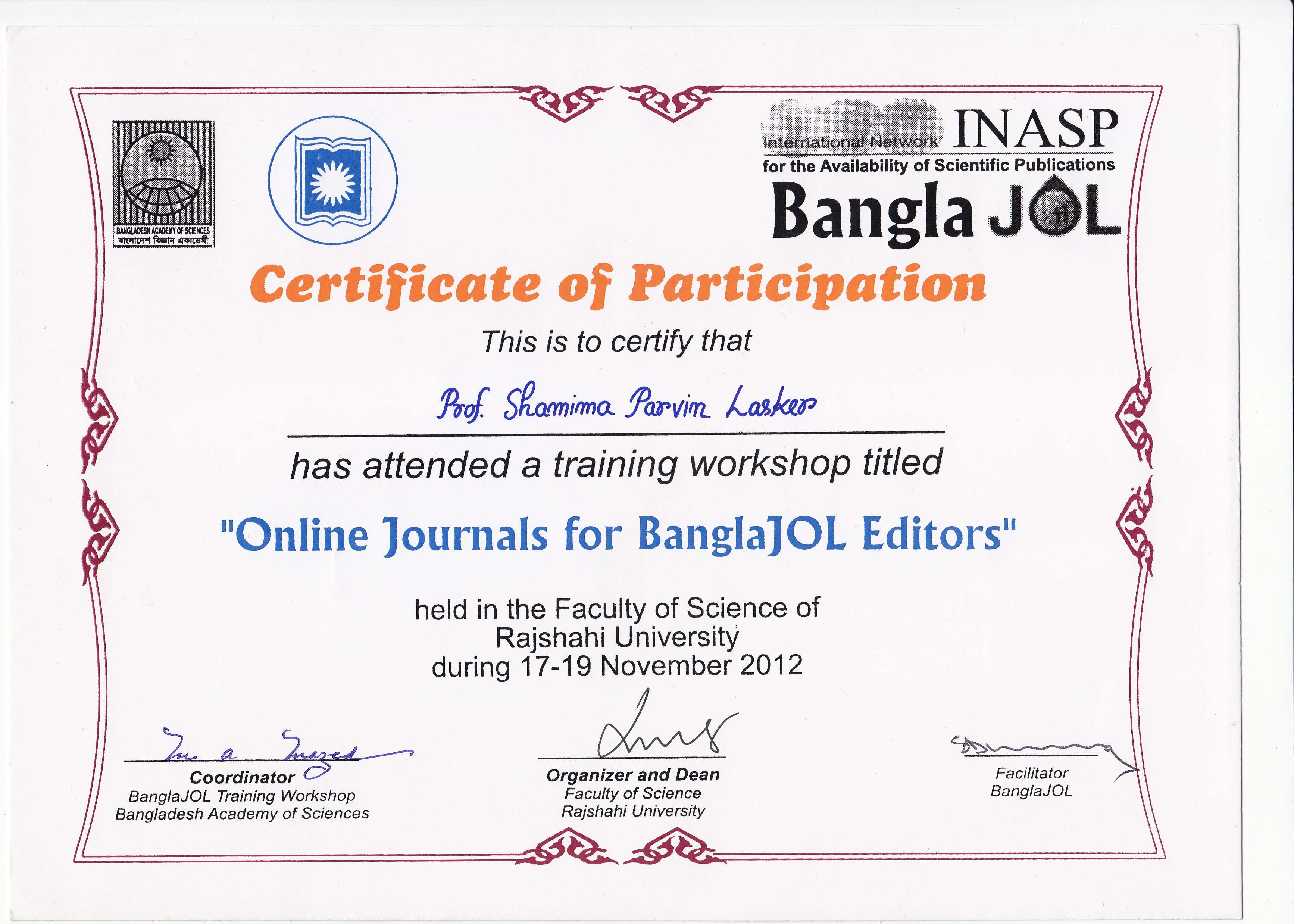 60. Shamima Parvin Lasker , Zahidul Hasan, M. R. Sarker, Labuda Sultana ,Lutfun Nessa. Atherosclerosis in 110 postmortem hearts of people of Bangladesh. Bangladesh Medical college journal 2003; 8(1):26-29.