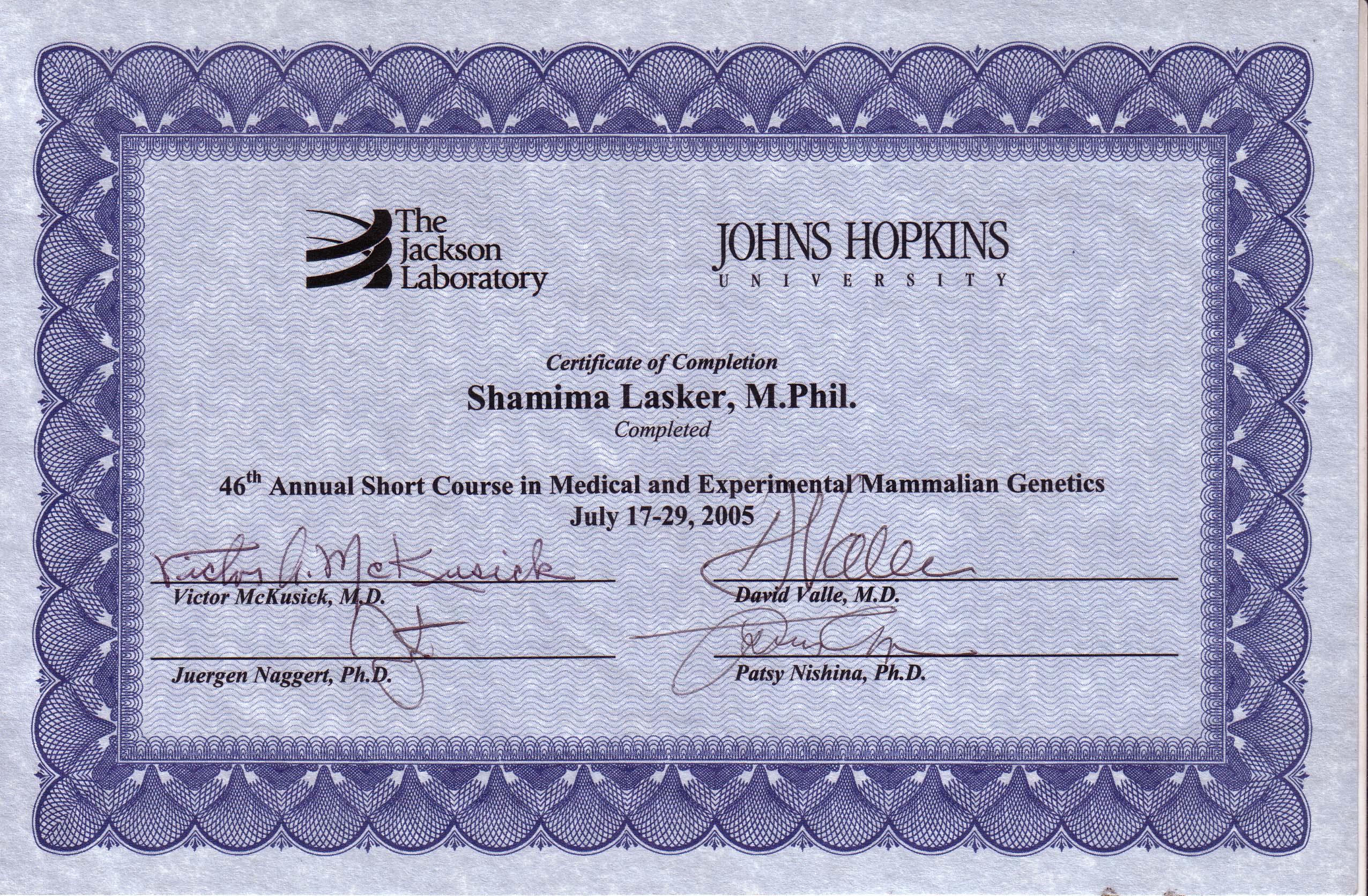 6th annual short course in medical and experimental mammalian genetics, (Poster presentation),